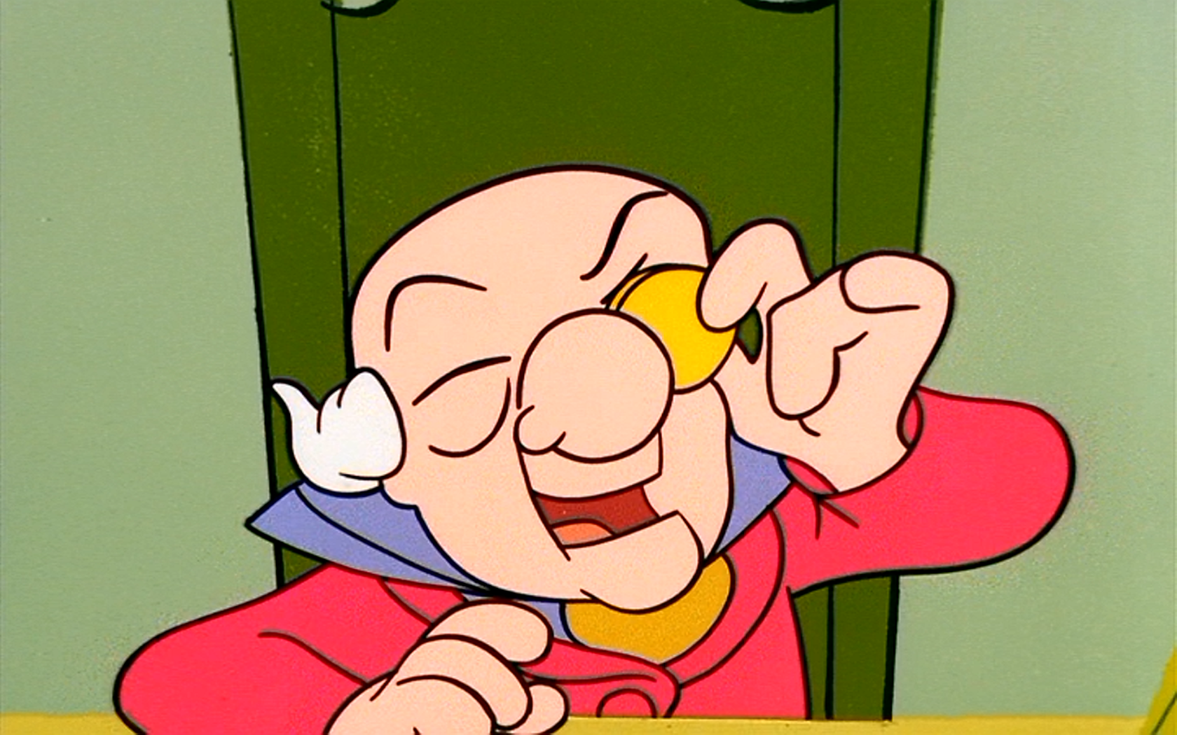 It goes without saying, but he really does cut his eyes at the audience for a minute right here with an incredulous look. He can’t believe someone as stupid as Magoo is as rich as he is. Welcome to the real world, Santa Ghost.