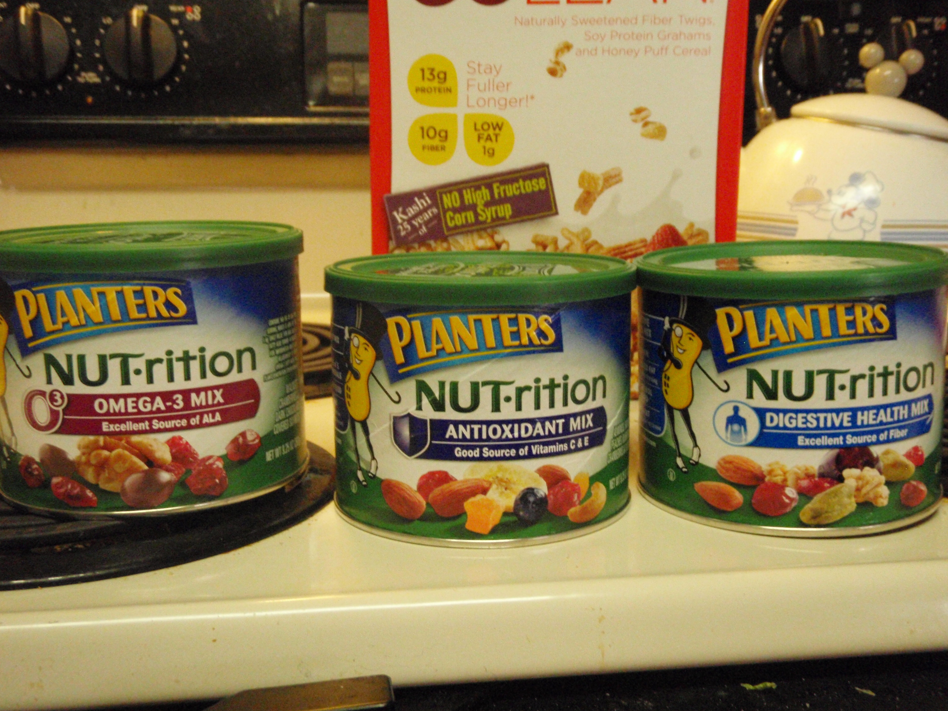 As you can see, there are three of them here. I did not purchase the complete set of four. So these are like the Ghostbusters before they got Winston. These were drastically on sale because “healthy fruit and nut sets” just don’t appeal to Alabama fans. The fourth one was called “Bone Health” because it proclaimed “Good Source of Calcium!” on the label. My cousin, who is in medical school by the way, told me that people who are trying to lose weight should never buy anything that claims to be an excellent source of calcium because that’s their way of tricking people into buying stuff that has tons of fat, because calcium equals loads of fatty dairy products. I’m pretty sure that pizza is an excellent source of calcium, for example.