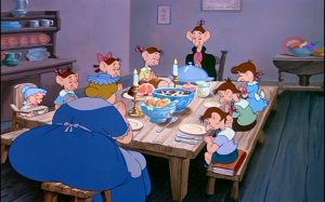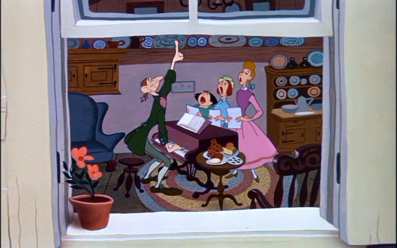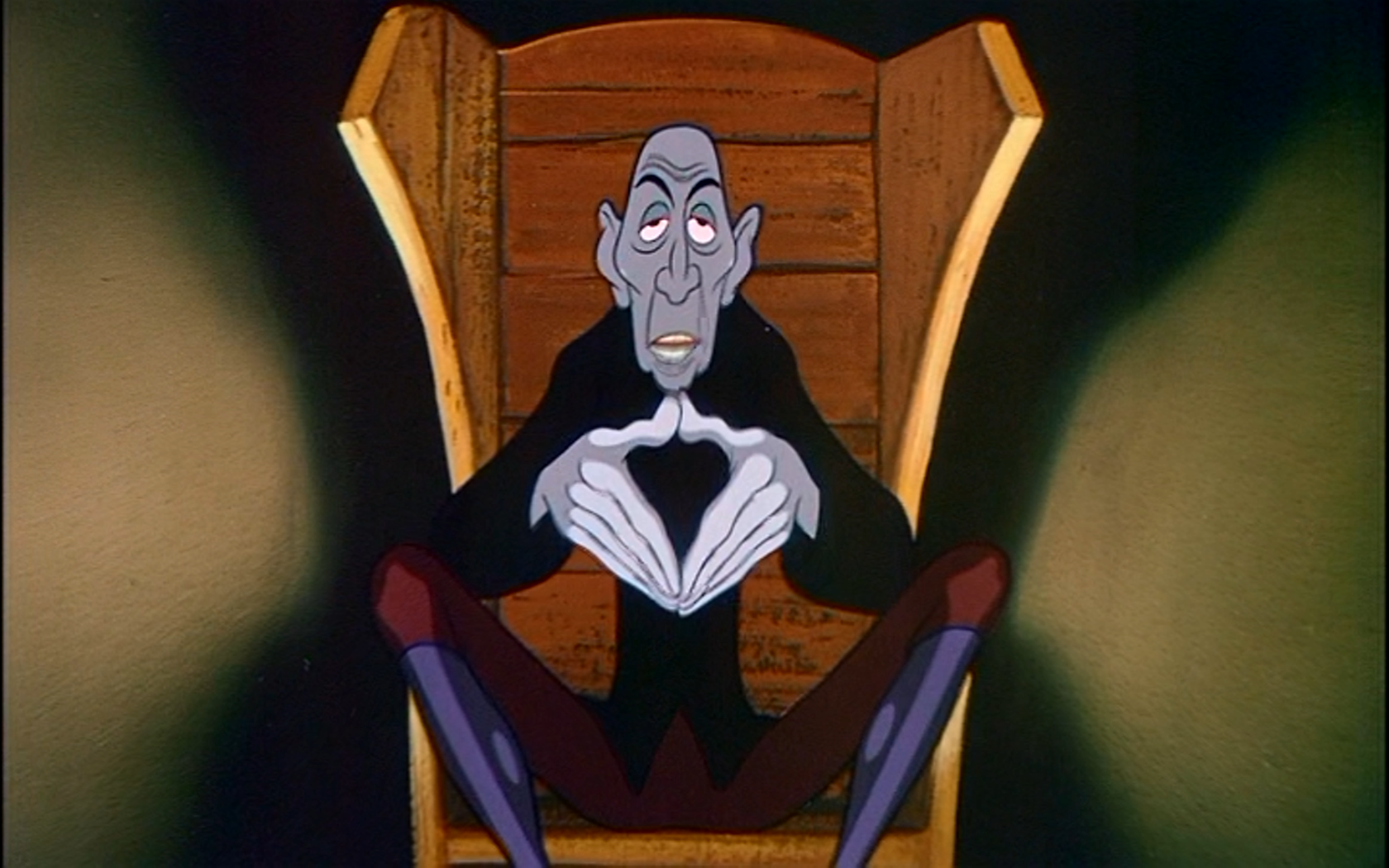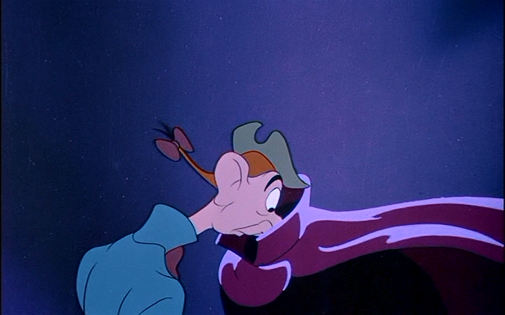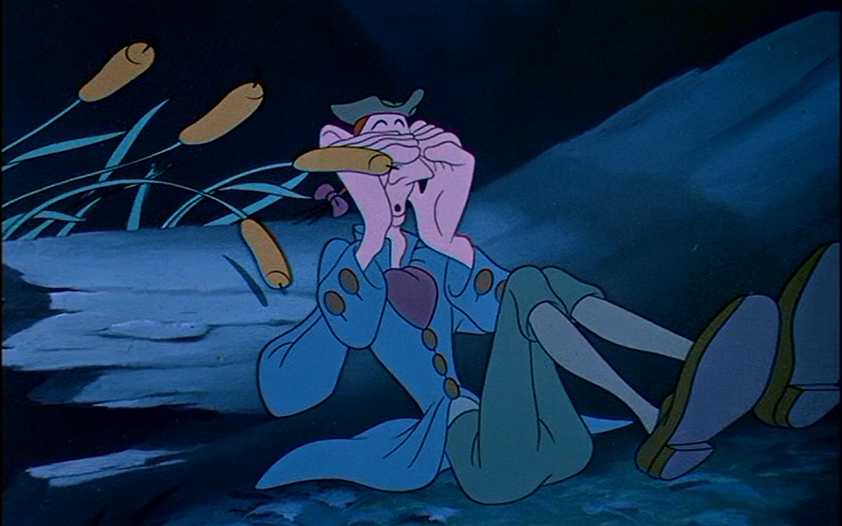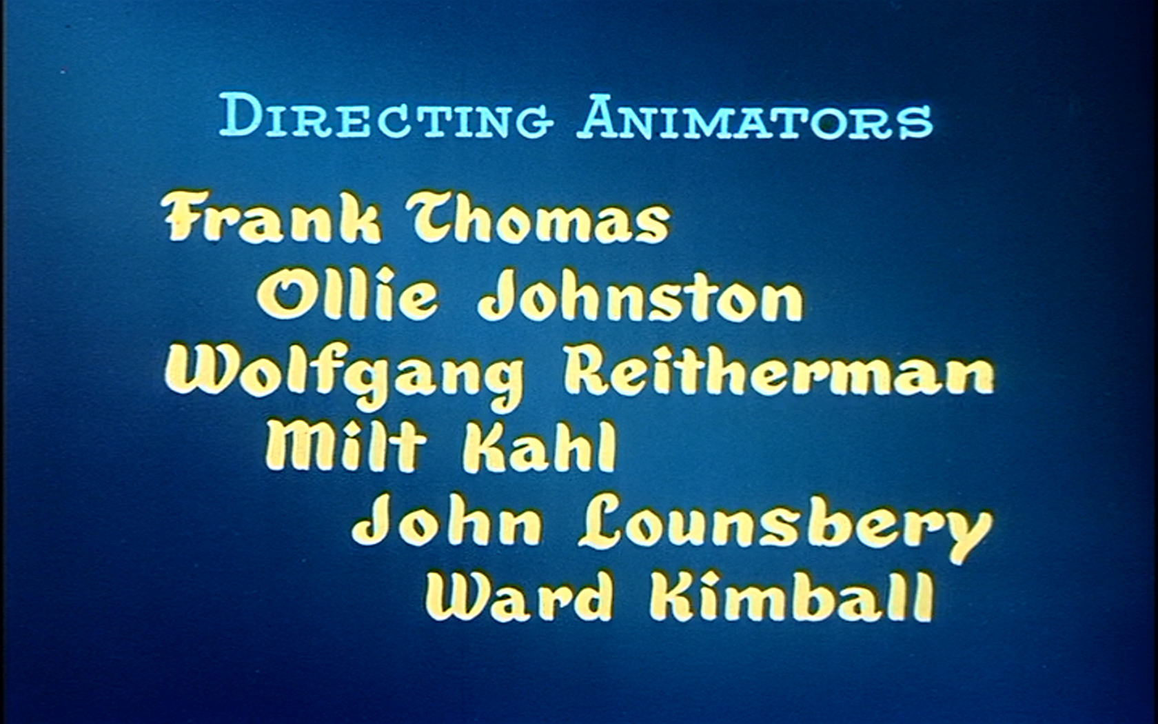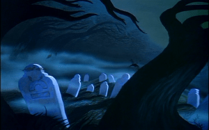 It’s often hard in an animated film to know who to give the credit to, for their genius work. In this case, you have some really great animators working on this picture. Three of my personal favorites, Ward Kimball, Frank Thomas, and Ollie Johnston, all helped direct the animation in this film, which is a large part of where its “look” comes from. Though not pictured here, Marc Davis is also credited with some animation work. Marc Davis is one of the main guys who helped design the Haunted Mansion dark ride, so the look of this film is no surprsie there. If you haven’t seen it, I’d recommend the documentary “Frank & Ollie”, which is about Frank Thomas and Ollie Johnston, two animators who literally wrote the book on classic Disney animation.