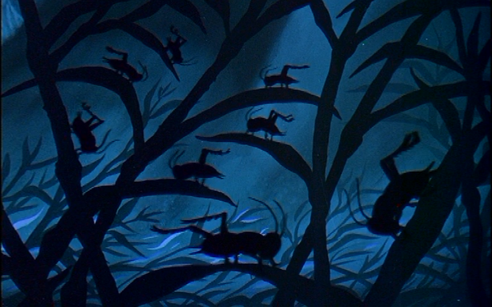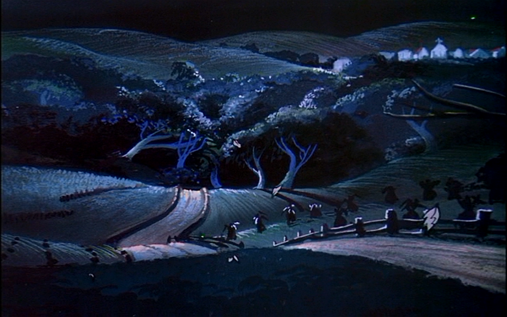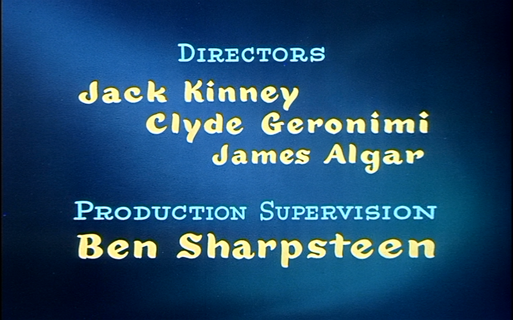 Here we have the “real” directors, the guys who get the final say in what the picture looks like. I am under the opinion that Clyde Geronimi is mostly responsible for the stylized look of a lot of the film. His other work in Sleeping Beauty, Peter & the Wolf, and the Three Caballeros bear a resemblance to some of the more interesting shots in the Adventures of Ichabod and Mr. Toad.