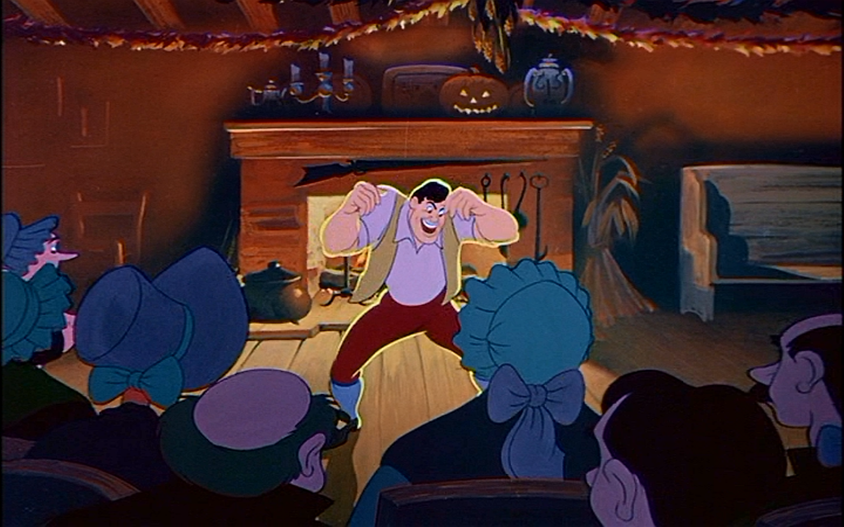 I didn’t show it here, but there is a shot at the end of Brom’s musical tale where Katrina is laughing at Ichabod’s reaction to the story, showing that she enjoys seeing Icky scared out of wits.