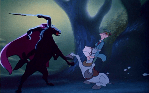 But back to Bing. Bing Crosby really gives Ichabod his debonaire qualities. He can sing, for one thing, and he has such a great voice while narrating, throwing in that late 40’s wit like you see in a lot of Bugs Bunny cartoons.