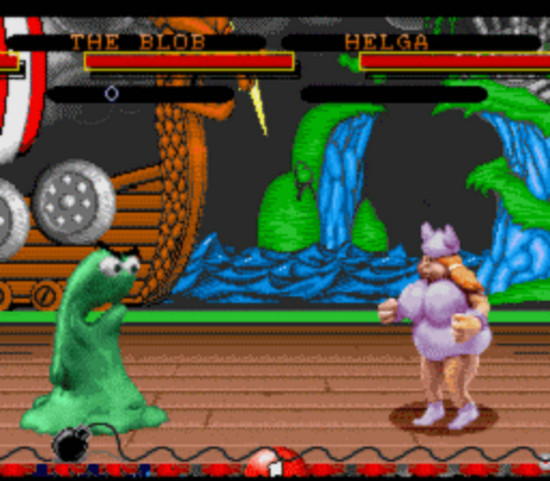 I didn’t get a good clear shot of her, but she looks rather like a melty, old lady version of the guy on the left in this screen from Clay Fighter (yes! that wasn’t too forced was it?)