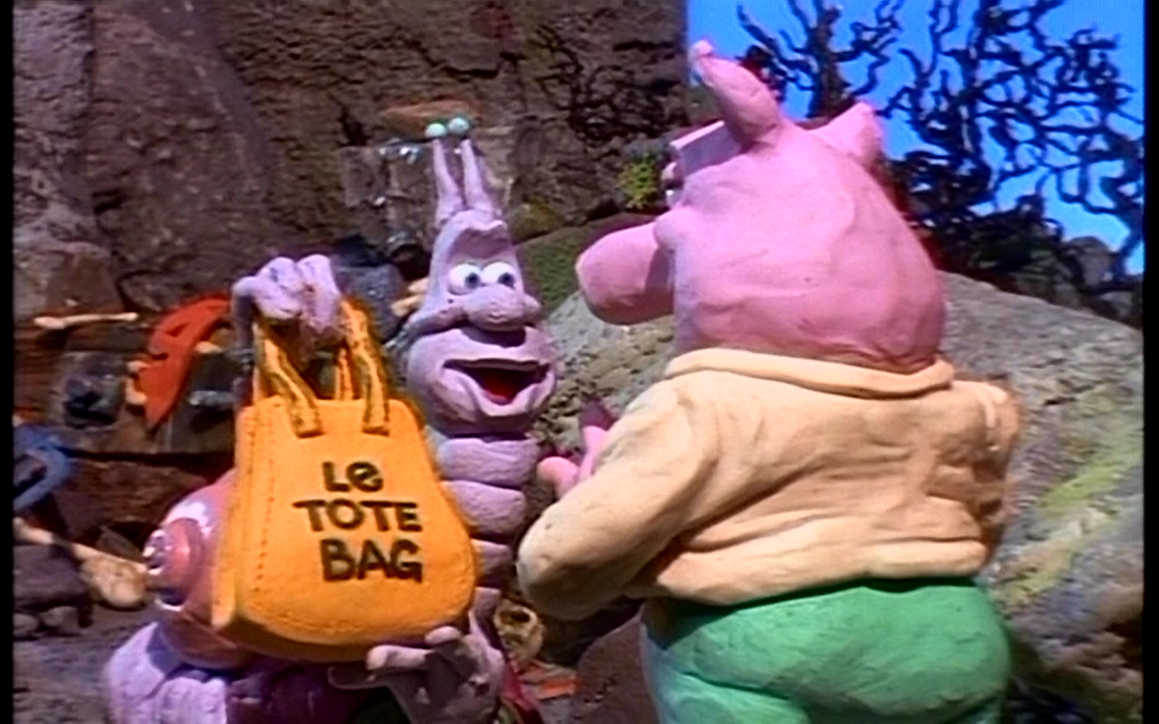 He finds Frankenswine’s buried treasure; a tube thing that turns his head into a television and tells Wilshire that, if he follows the map (that is now conveniently drawn on Sheldon’s tongue), he will find an all-powerful monster that will help him to conquer the world. And also a lovely souvenir tote bag.