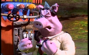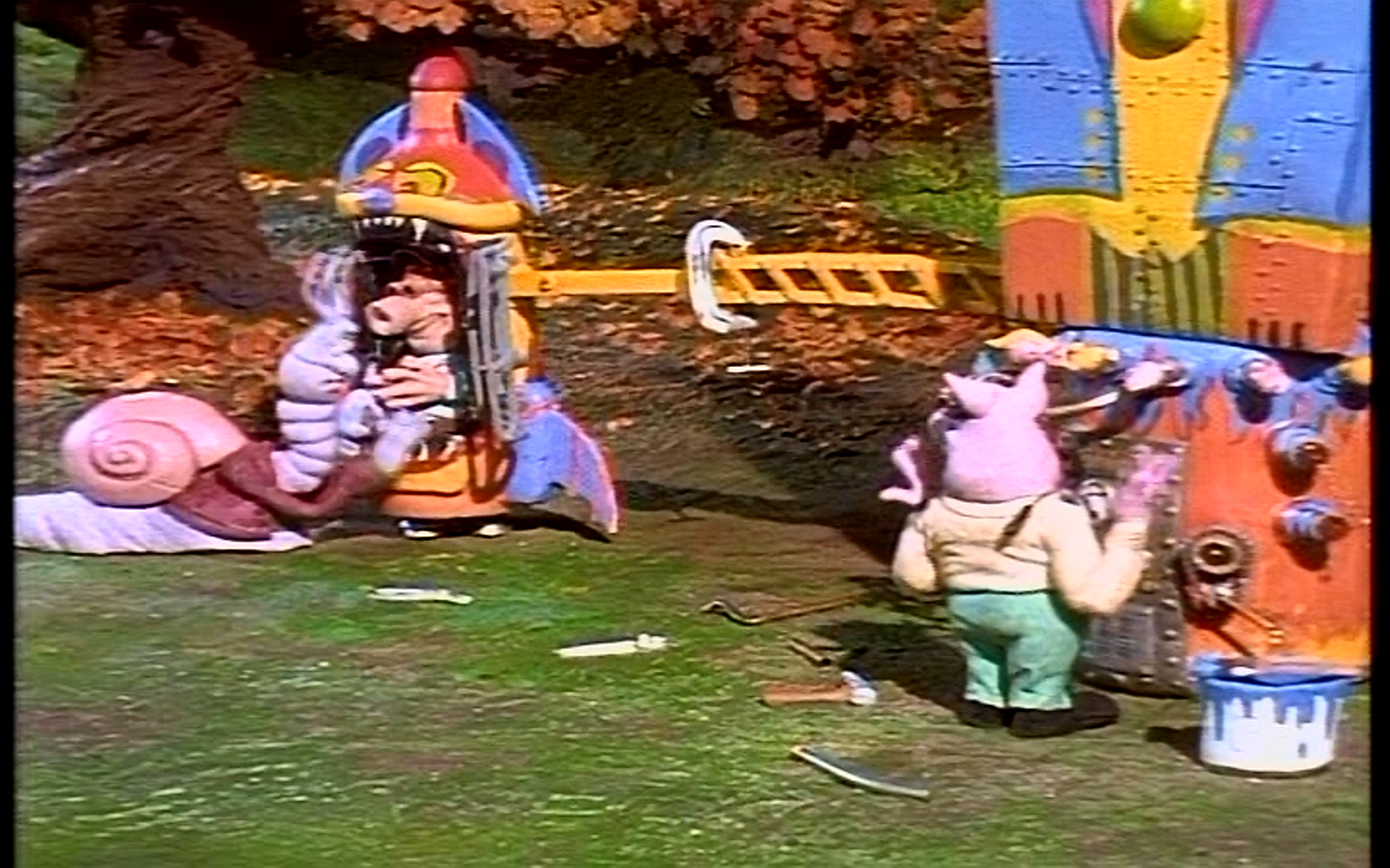 Here we have Sheldon Snail (on the left. the one that’s a snail), best, and presumably only, buddy to Wilshire (on the right at the control box) Pig. Inside the ride, the guinea pig (ha!) is Vince, whom I think is Wilshire’s uncle. You can forget about him, he’s a very minor character.