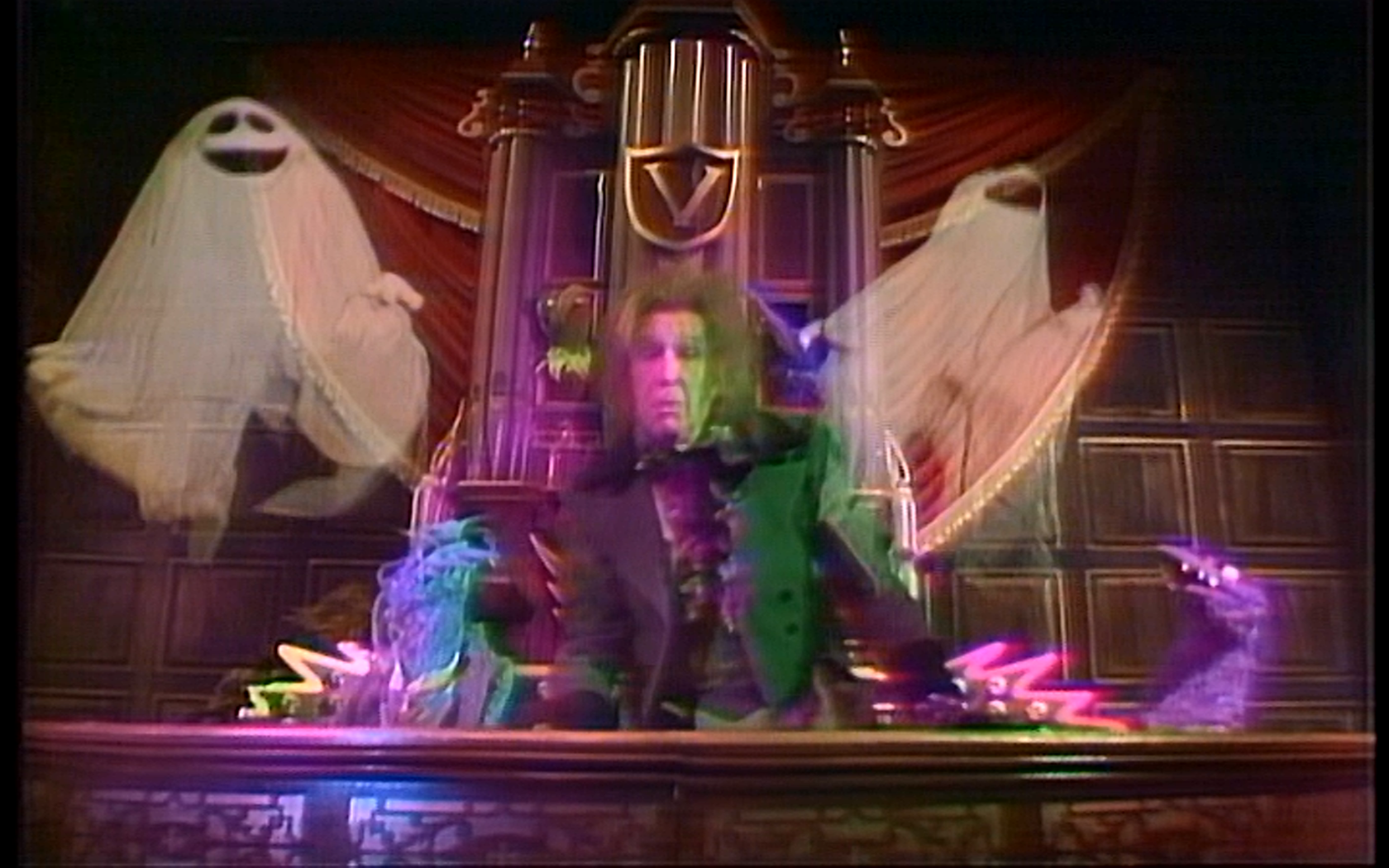 “At the Dance” was a segment that usually starred “human” muppets, who would dance and toss out one-liners like they were yesterday’s coffee grounds. Since this is a “scary” episode, all the dancers are either ghosts or monsters. Here’s what these two say: