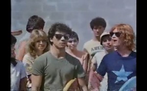 Watching a movie in a movie is always a good way to fill out some time. Eugene shows up to the surf flick with his girlfriend looking like David Bowie and the the guys pull the old “flaming bag of shit” trick on him, inside the theatre! I’ve been known to get up to some hijinks in the cinema, but I don’t think I’ve ever lit anything on fire. Much less a paper bag full of feces.