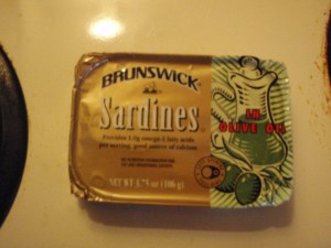 Do not be afraid of sardines, just have a some gum or a toothbrush handy to scrub the funk out of your mouth after it’s all over. I actually find them to, most of the time, be quite tasty. But they may be an acquired taste and I just don’t know that b/c I’ve always eaten them.