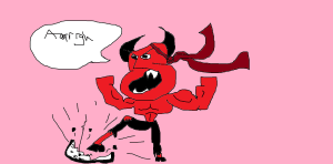 I also like Daylight Savings Time because I feel like we get “Bonus Night Time” and, as we all know, the night time is the right time. I realize that it is not the Time Change or the clock that gives us this night time, but that it is the inevitable conquering of the Forces of Good by the Forces of Evil and whatnot that happens every year around this time. So we celebrate the longer nights and shorter days as the forces of Darkness hold sway over all the Earth, at least for a little while. A fact that I have perfectly illustrated here, with the Debbil smashing that bad ol’ clock back into “Darkness Rules” time.