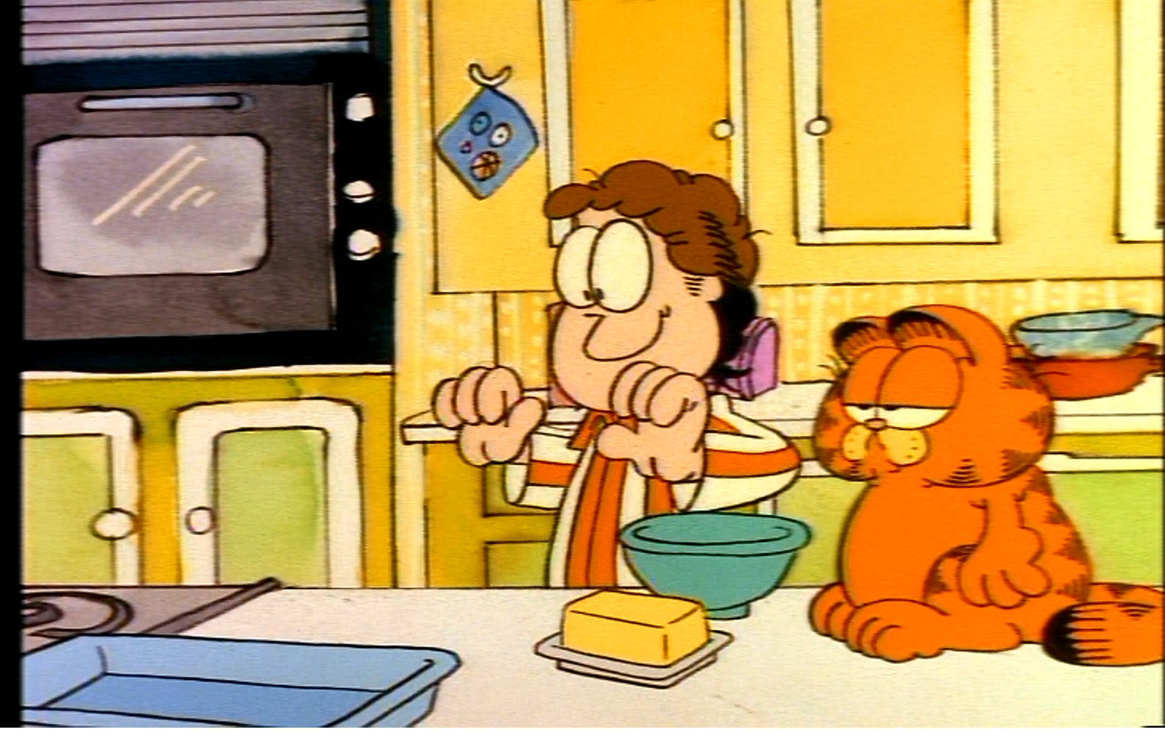 Grandma tells Garfield goodbye and leaves out the back door so that Jon can pretend like he prepared this meal all by himself and Liz will be impressed. Grandma flippin rulez.