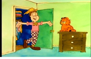 (For the record, I did like the use of the catch phrase in the Halloween special, when Garfield broke the fourth wall to comment on the appropriately timed flash of lightning and crack of thunder as they first set eyes on the decrepit old house across the river.)