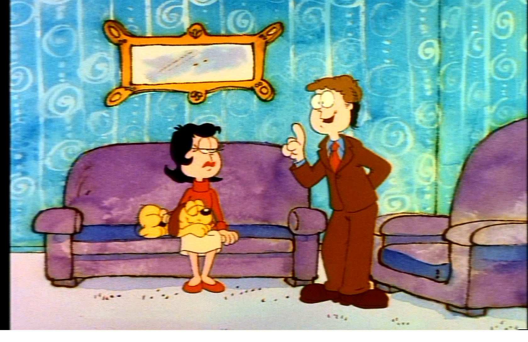 Garfield goes and gets Jon and Liz and Liz is appropriately impressed. Here they are having a prayer while a really bad song plays. I guess this is supposed to be touching, but it kinda fails, unlike the Halloween special (which is actually kinda scary) and the Christmas special (which is actually kinda touching). Hard to believe nowadays that there’s a shot of people praying before a meal on a tv show.