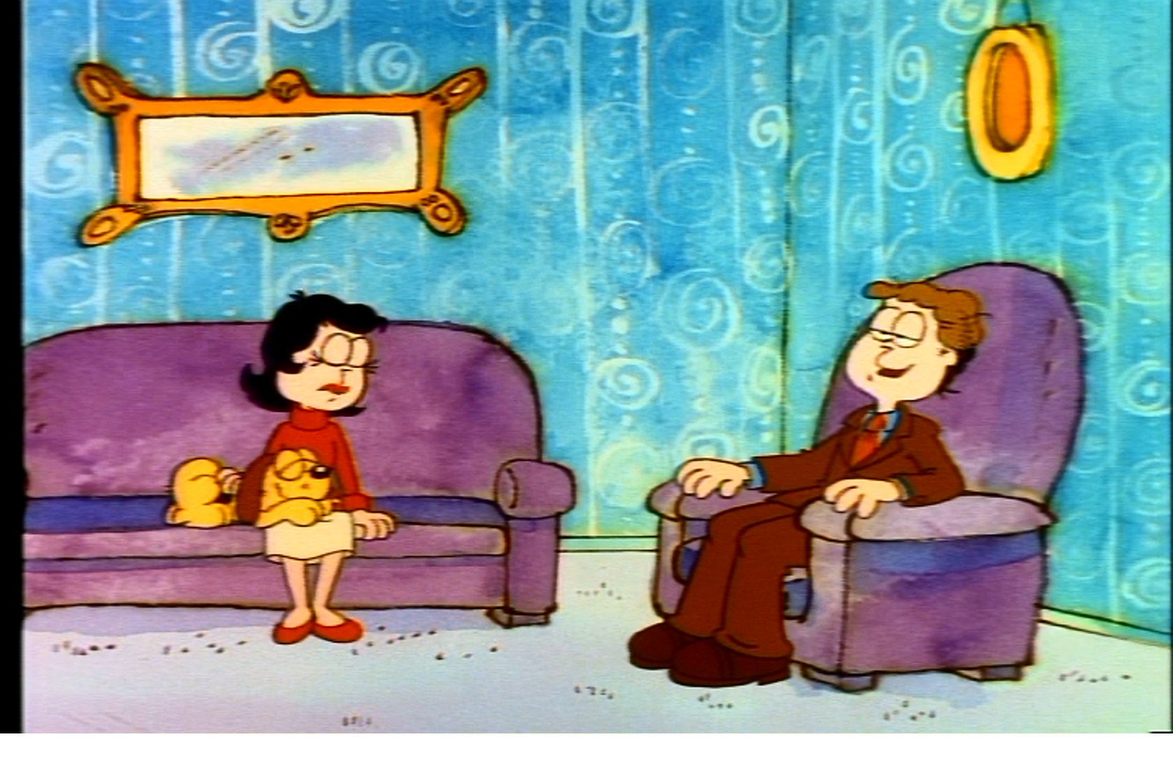 Jon enjoys visits to the vet, because he can flirt with Liz. Once again, I can never really figure out if he and Liz are together or not. In some episodes it seems like they are a couple, but in this one she’s quite surly with him and has no patience for his awkward advances. I can empathize with this too.