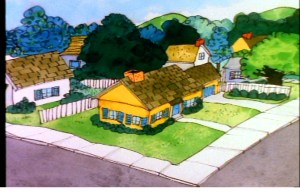There’s a short exposition scene before this that sets up the plot. I didn’t include any screencaps of it because it is basically just Garfield, monologuing. But we do get to see the scene shown in the episode menu screen: it is Garfield, and he’s not about to kick Odie off the table. He has torn up a note on the calendar that reminds Jon that Garfield’s visit to the Vet is today (Wednesday. And the vet is Liz, Jon’s would-be girlfriend). When Garfield tears off the Wednesday note, we learn that tomorrow is Thanksgiving. Unlike Halloween, Garfield is well aware of what Thanksgiving is, so he and Jon are off to the store to get “lots of good things to eat”. Then this title screen comes up and a song sung by Lou Rawls about doing dances named after Thanksgiving foods. I would love to know how to do the Cranberry.