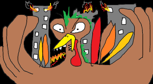 Today I will cook a turkey. A whole beast, roasting right there in our oven. Her (it’s a hen) short life snuffed out in a blinding flurry of hormones, chemicals, and the feces of her fellow doomed comrades. All to end up as the main event on a holiday when fat Americans, such as myself, celebrate their fatness and decadence by eating slightly more than they consume on any other day.