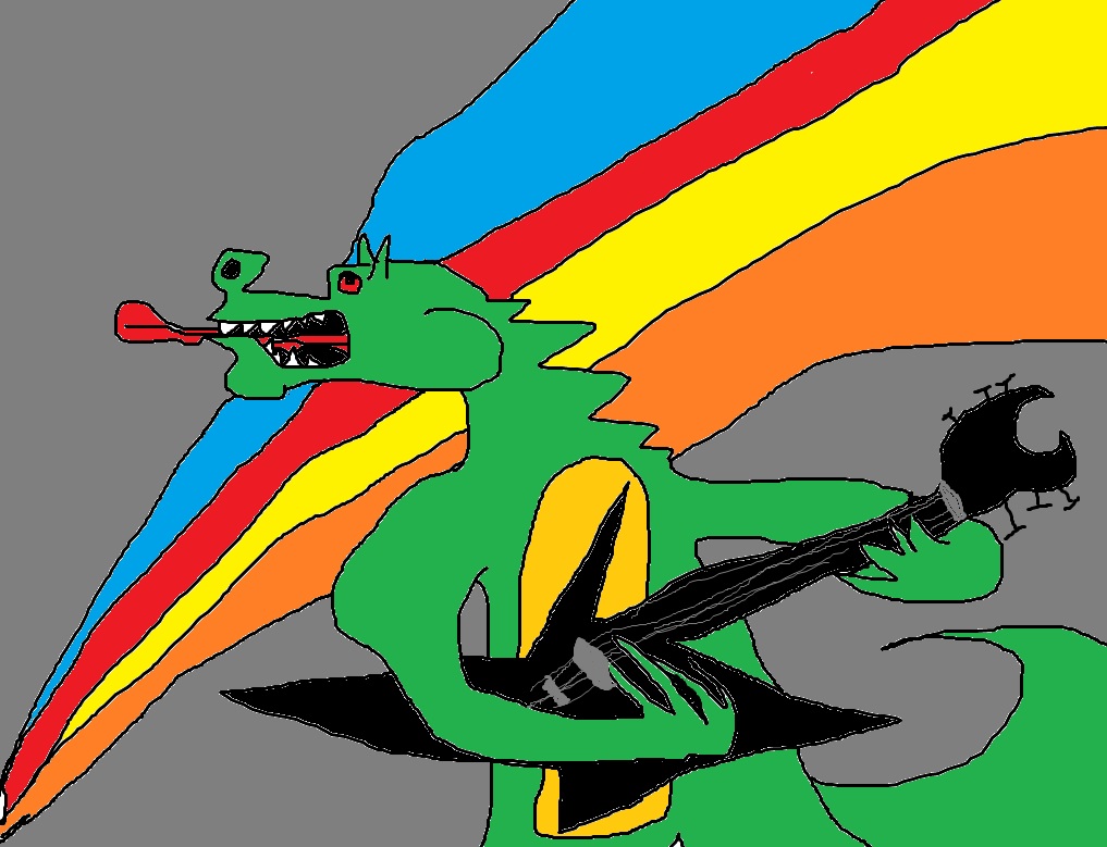 Oh, and before I forget, I made a computer picture for the playlist. I google-imaged “rock n roll dragon” and nothing came up, so I made my own: