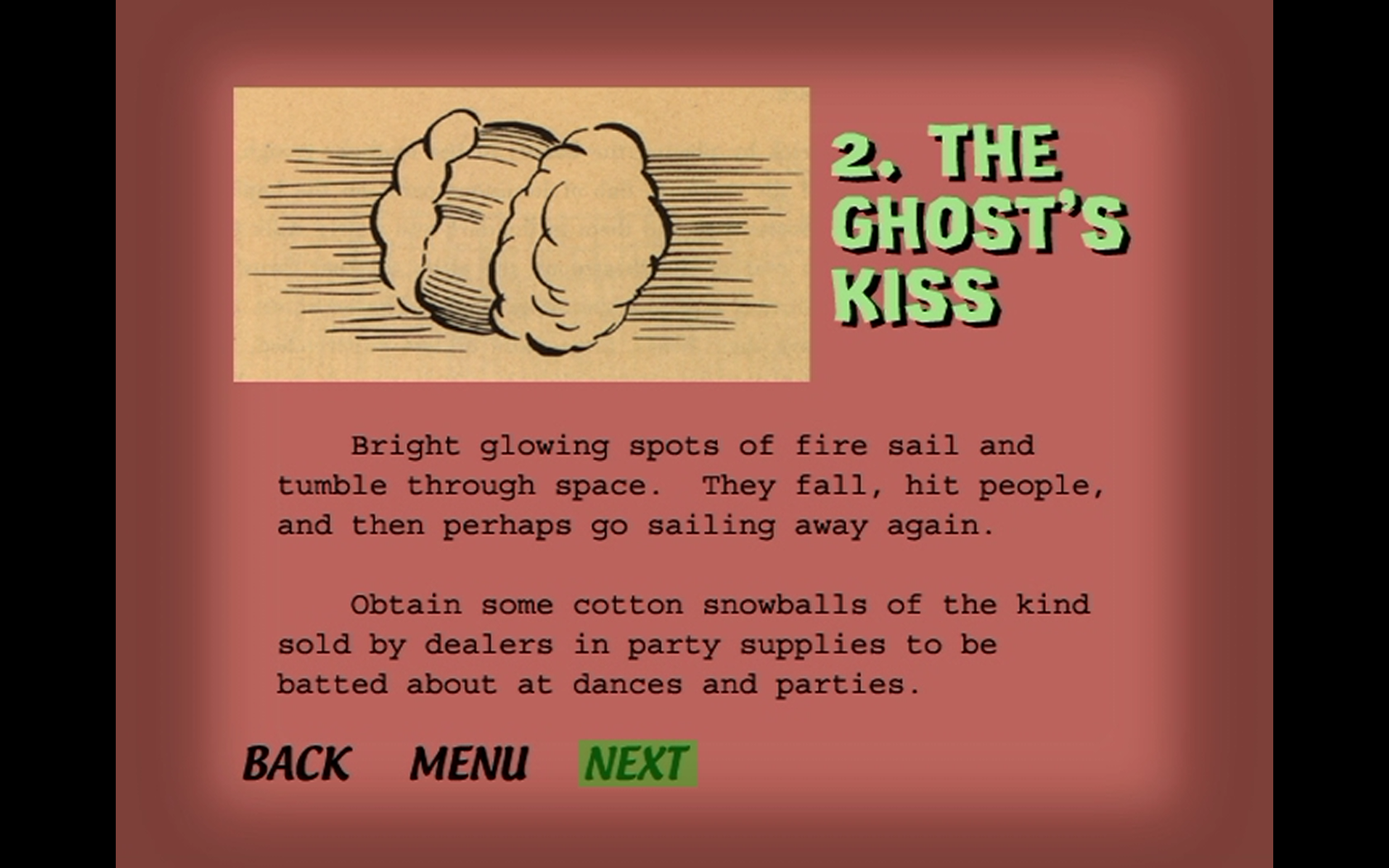 That’s right. Believe it or not, one of the easter eggs is basically a 1960’s magic book with ghostly tricks to frighten your guests. Like my personal favorite: