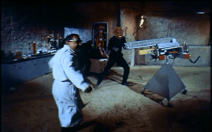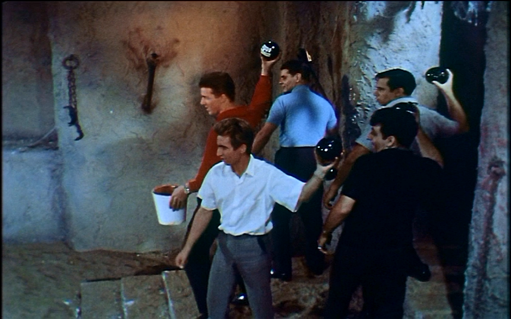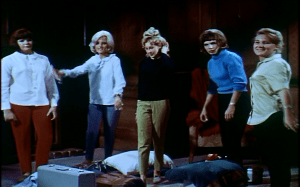 I wasn’t alive during the 60’s, but this joke possibly came straight from Mad Magazine. I can vividly picture a Don Martin cartoon with “cut here” written under a dotted line on his head. There are tons of these sorts of gags all throughout this flick, which makes you wonder if it was supposed to be scary or not. There’s no doubt that the part where the monsters run out into the audience was supposed to be scary. This, not so much.