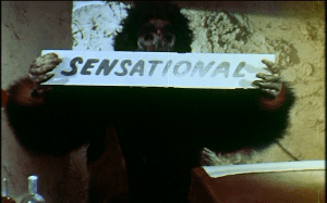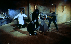 Seriously. That’s where it ends.Well, a gorilla comes out and hits gong, but that’s it. No credits. No music. No nothin’. A girl is trapped in movieland and they just end it there. “Hope you enjoyed the show! Don’t forget to visit the concession stand! Tonight: Gorilla Juice!”
