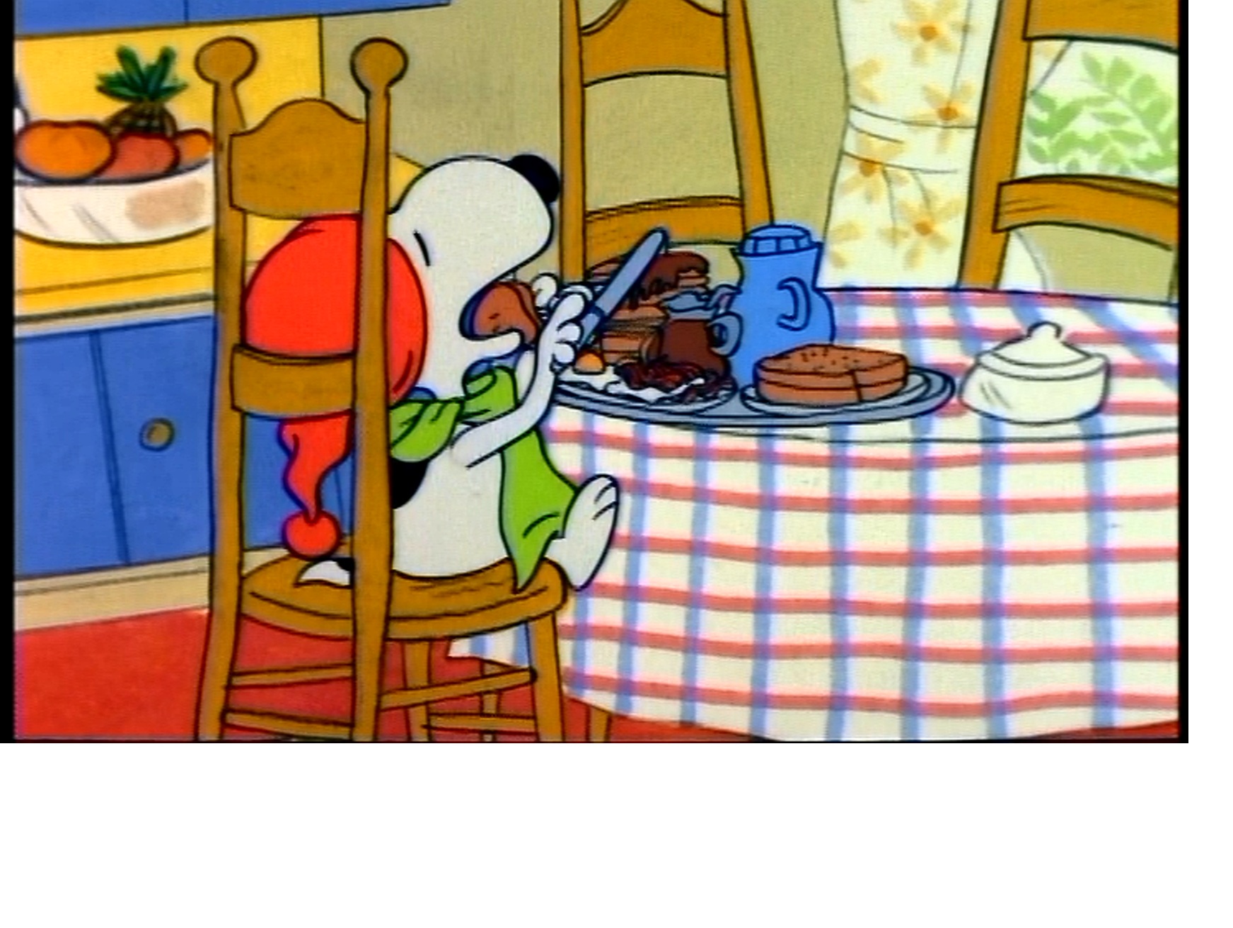 The Snoopy whips up a fine breakfast for himself, like the mom in Friday. I think I realized at this point in the show that, obvious as it may be, Snoopy is the best character in Peanuts. Charlie Brown is the Seinfeld of the bunch, the everyday guy that all these weird characters are in orbit around.