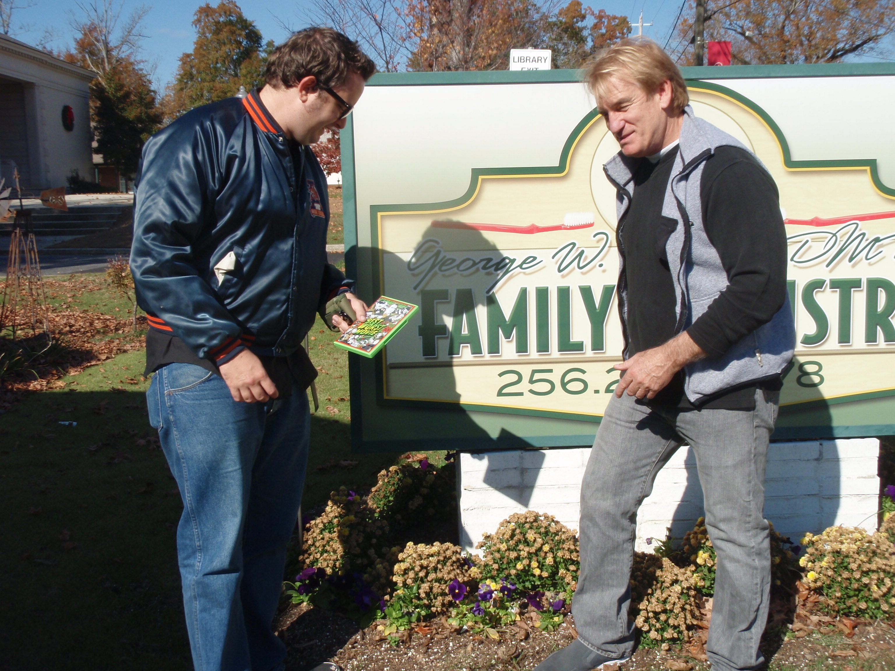 I have our conversation from the dentist office to Cecil’s on tape. It mostly consisted of George telling us that the owner of Cecil’s went to Auburn, and about all the other important people in town who also went to Auburn, including his cheerleading partner. Then I tell him that I was in the audience when he skyped-in to the theater that I saw Best Worst Movie in.