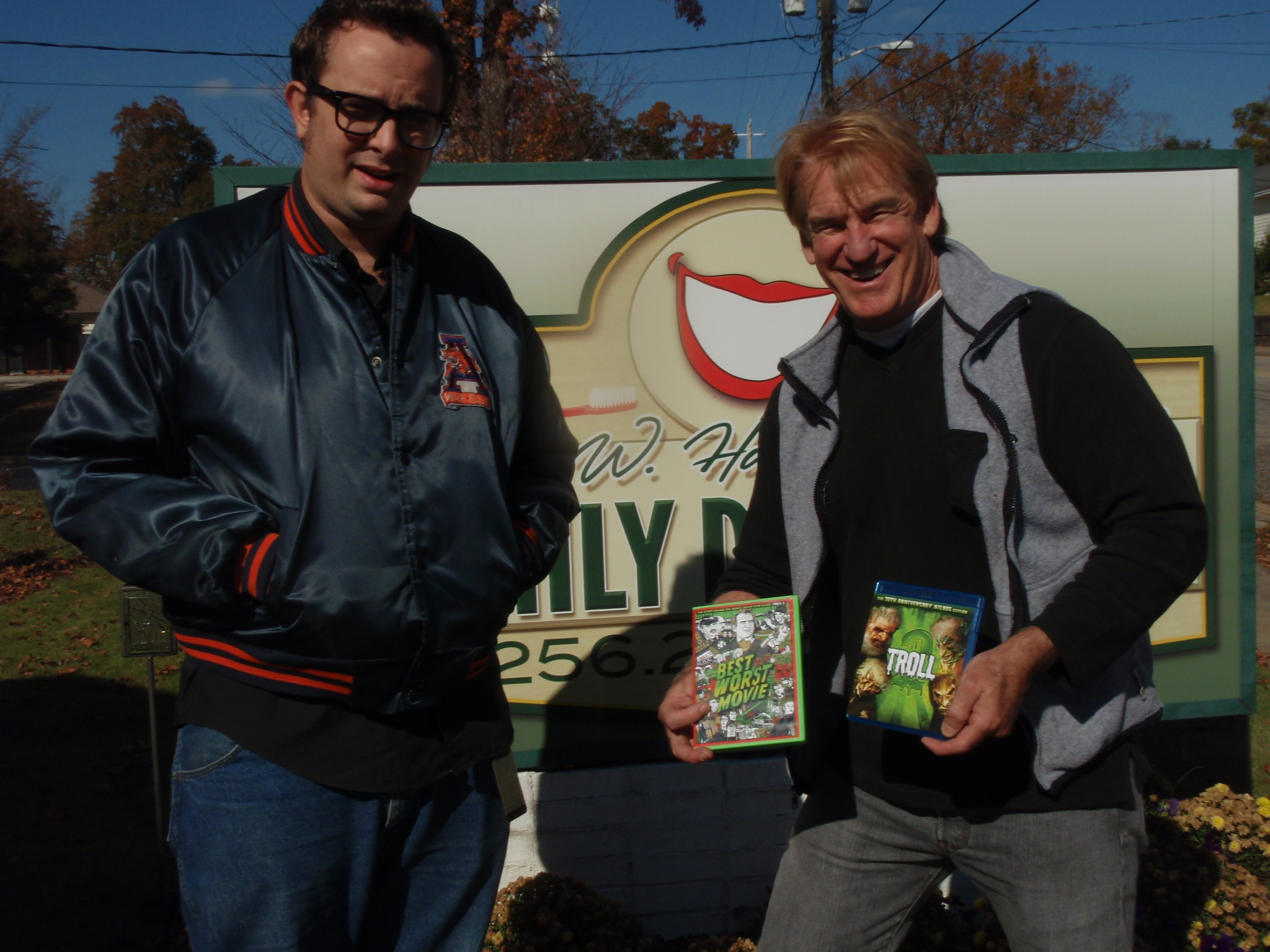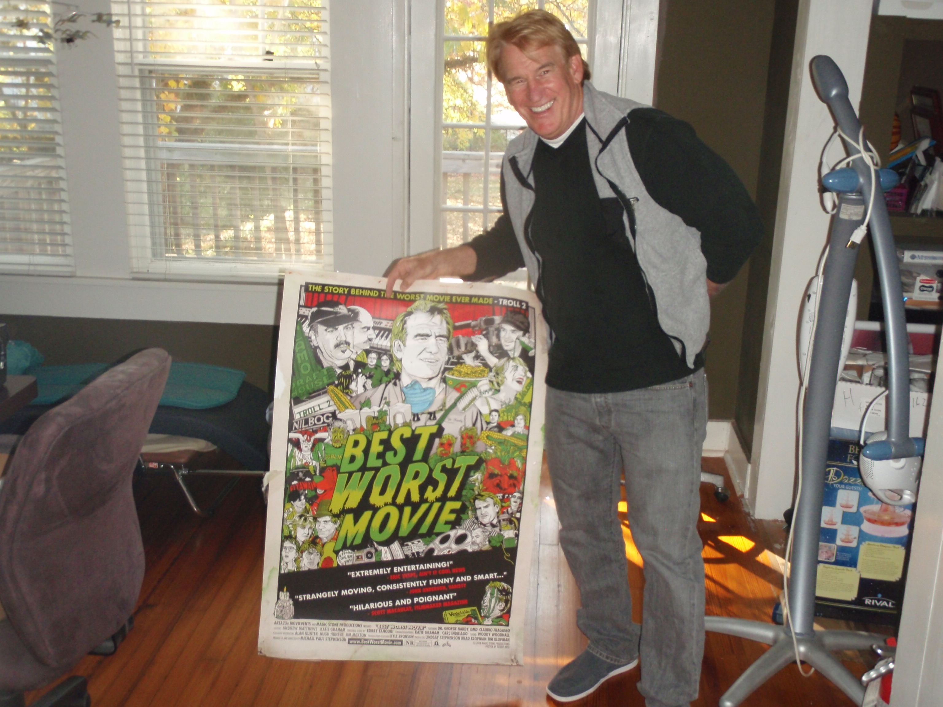 George’s first time handling a copy of Best Worst Movie on dvd. Also a copy of Troll 2 on bluray. Me looking proud to be there, which I was.