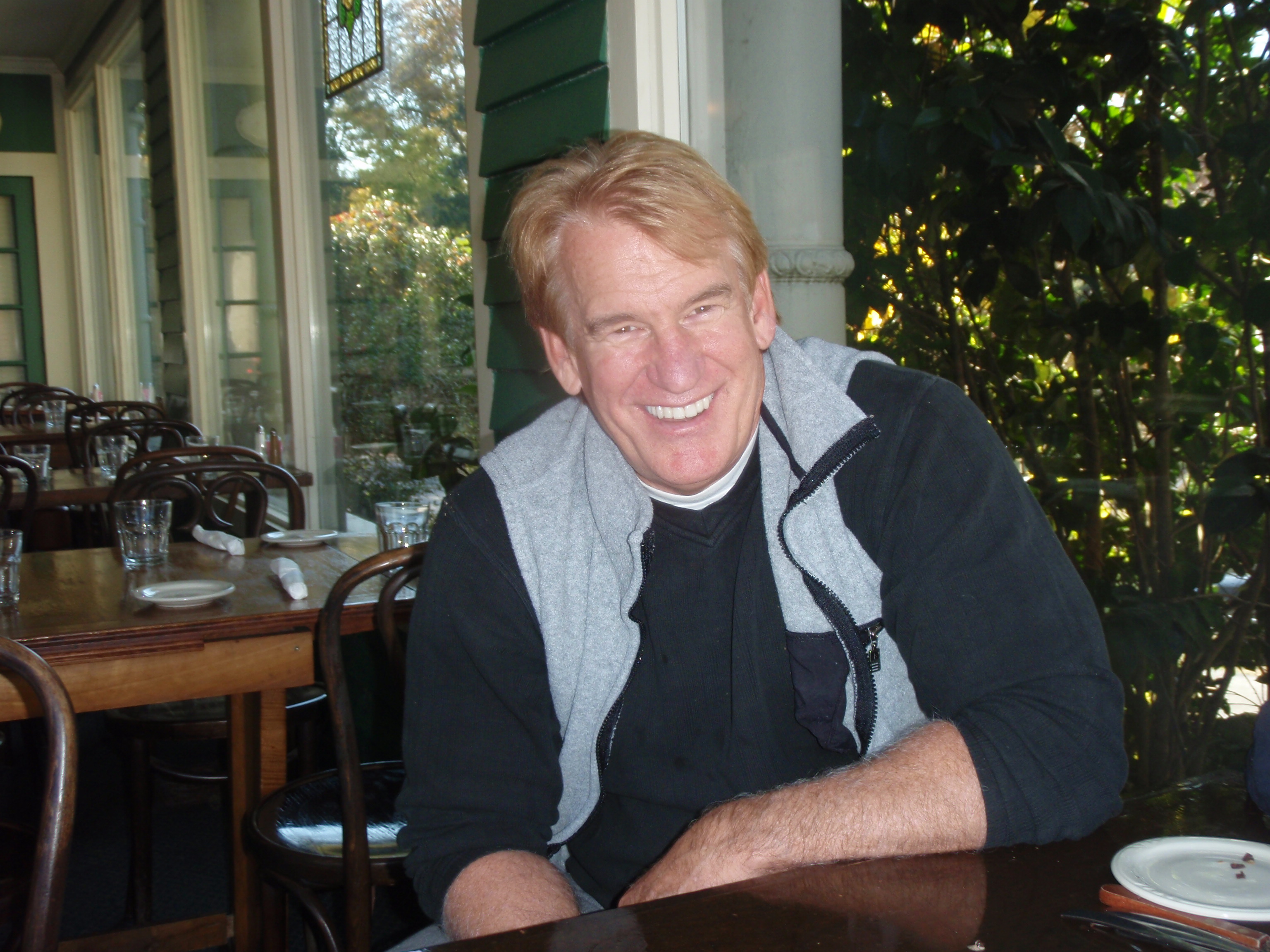 Lunchtime with George Hardy. No green slime on the menu, thankfully. I think I had some sort of fish that came out of Lake Martin.